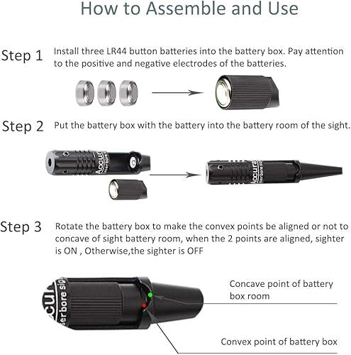 2. Install the three AG13 batteries and switch on the laser.
