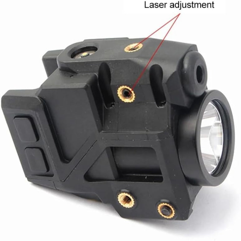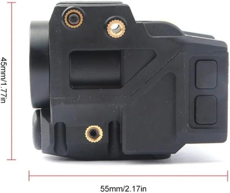 Compact 500-lumen tactical flashlight with integrated blue laser for precision targeting.