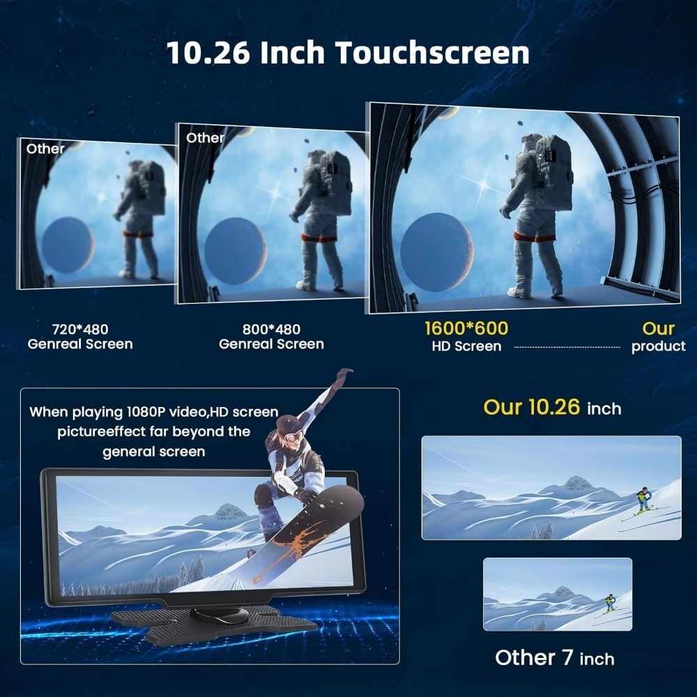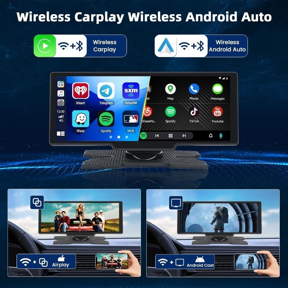 Upgrade your ride with this 10.26-inch Wireless Car Smart Screen — a portable multimedia hub that works in almost any vehicle with a 12V outlet. Enjoy wireless CarPlay, Android Auto, Bluetooth calling, and a built-in dash cam without replacing your factory stereo. Easy plug-and-play setup makes it a practical choice for cars, trucks, and vans alike.